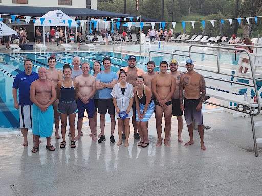 Beyond the office, I’m mostly at the pool these days. Though I played every youth sport offered, I was primarily a swimmer on a year-round club team starting at age 5, which is the genesis of my drive to compete and win in business. I flirted with the idea of choosing a school with a collegiate swim program, but when I chose to stay local and attend Mississippi State University, my swim career went into hibernation. Fast-forward more time than I’d like to admit, and I am now father of two club swimmers, and I’m an assistant coach on their club team. I also help organize a group of adults who compete in a summer swim league for grown-ups Thursday evenings each July. That’s me in the royal blue on the left in this photo with our adult summer league swim team from the 2025 season.